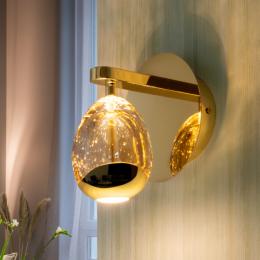 Lámpara de pared de 1 luz LED, realizada en metal acabado dorado. Tulipa con forma de gota