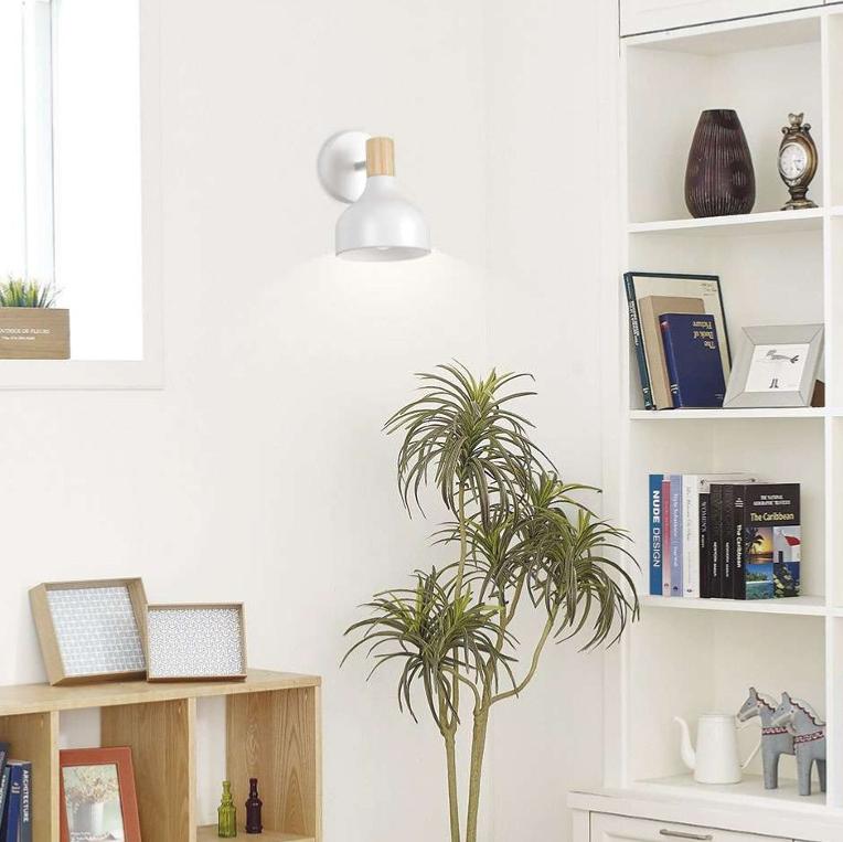 Aplique Aran blanco-madera - ALEMARLámpara /Aplique de pared de la Colección ARAN. Un aplique de pared con un diseño sencillo y funcional, con cabezal orientable. Fabricado en metal y madera, con un punto de luz, compatible con bombillas Led E-27, 1 x E-27 60W Max. (no incluida). Materiales y Tonalidad Materiales: Metal/Madera Tonalidad: Blanco Iluminación Iluminación Tipo: Bombilla LED Número de bombillas: 1 Portalámparas: E-14 Potencia de casquillos: 40W Bombillas incluidas: No MedidasOtros datos de interés