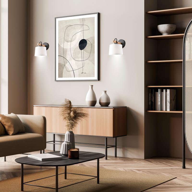 Aplique AROLAS negro-madera 1 x 60w e-27 - ALEMARLámpara / Aplique de pared de la Colección Arolas. Fabricado en metal negro con detalle de madera y pantalla de tela. Un guiño al estilo nórdico que harán las delicias de los amantes de esta tendencia, tan afianzada. Usa bombilla E27, 1 x E-27 60W Ma Materiales y Tonalidad Materiales: Metal/Tela Tonalidad: Negro Iluminación Iluminación Tipo: Bombilla LED Número de bombillas: 1 Portalámparas: E-27 Potencia de casquillos: 60W Bombillas incluidas: No Medidas Medidas (cm): 17x21x22 Peso (kg): 0.4 Otros datos de interés EAN: 8435045095155.0 Colección: AROLAS