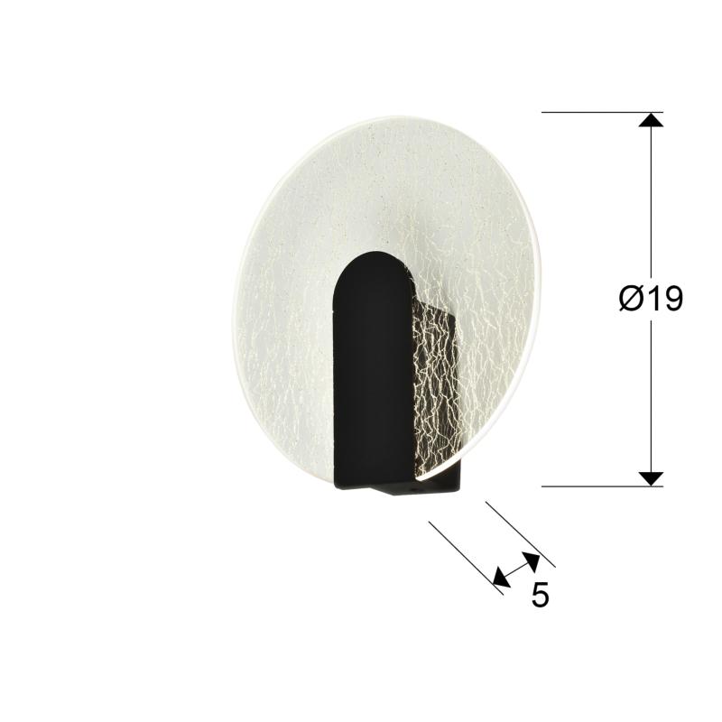 AURIS-APLIQUE NEGRO - SCHULLERLámpara de pared realizada en metal y aluminio, acabado negro mate. Difusor redondo de acrílico transparente, decoración microimpresa: textura de rayas doradas aleatorias. 5,5W LED, 450 lm, 3.000K Material/Tonalidad - Materiales: Metal, aluminio, acrílico./Met - Acabado: Negro mate, transparente./Matt Iluminación - Potencia Eléctrica: 5,5W - Lúmenes: 450 - Tonalidad de la luz: 3000 K - Tensión: 220 V - Frecuencia: 50/60 Hz - Vida Media: 50000 Horas - CRI: 80 Medidas - Articulo: Diámetro 19 cms / Fondo 5 cms - Peso: 0,48 Kg - Pantalla/Tulipa: Diámetro 20 cms / Fondo 1 cms - Florón de techo: Ancho 5 cms / Alto 9 cms / Fondo 4 cms Otros Datos de Interés - IP: IP 20 - Código EAN: 8435435338336.0 - Colección: Auris