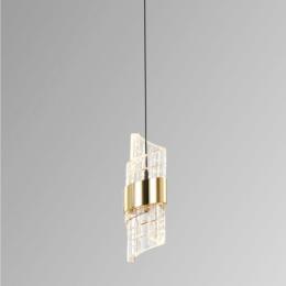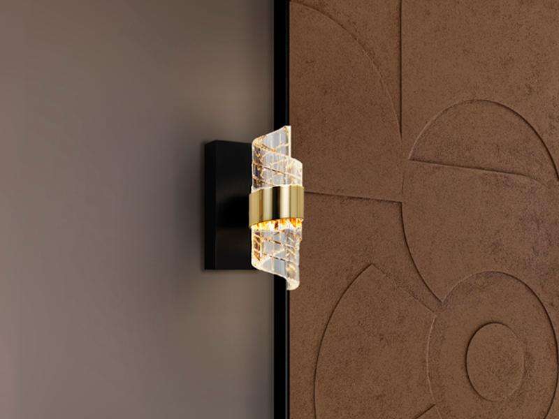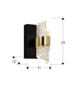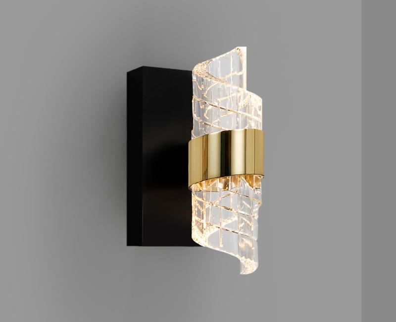 Lámpara de pared de 1 luz LED. Realizada en metal acabado negro mate y oro brillo. Tulipa con diseño en espiral, realizada en acrílico moldeado y tallado. 7W LED. 656 lm. 3.000 K.