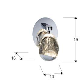 Lámpara de pared de 1 luz LED, realizada en metal acabado cromo. Tulipa con forma de gota realizada en cristal macizo con burbujas decorativas en su interior. 5W LED. 480 lm. 3.000 K.