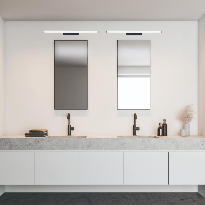 Este aplique se caracteriza su sencillez y estilo moderno, ideal para zonas de baños y espejos.