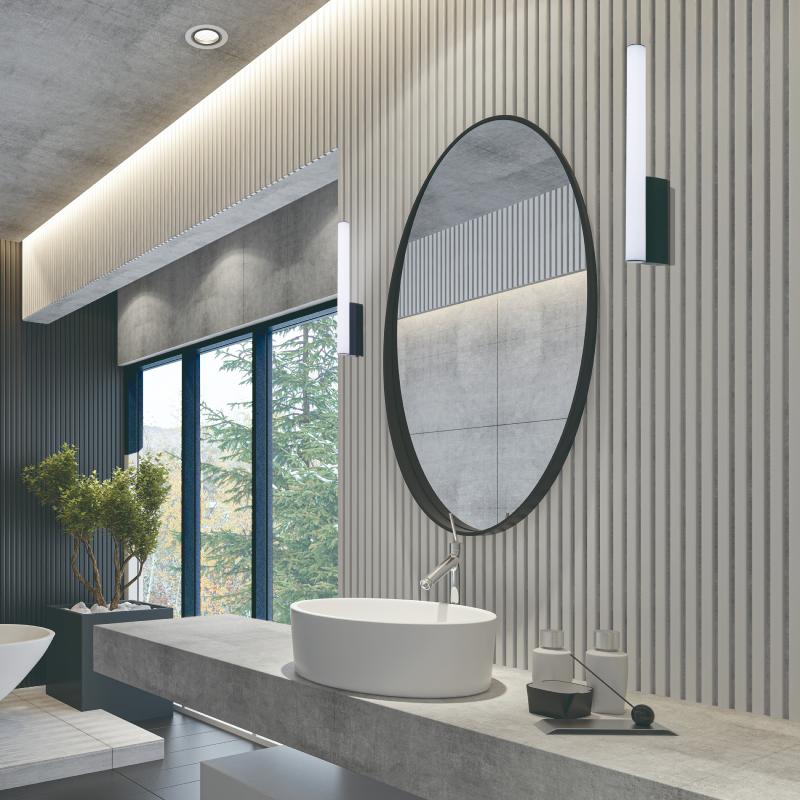 Este aplique se caracteriza su sencillez y estilo moderno, ideal para zonas de baños y espejos.