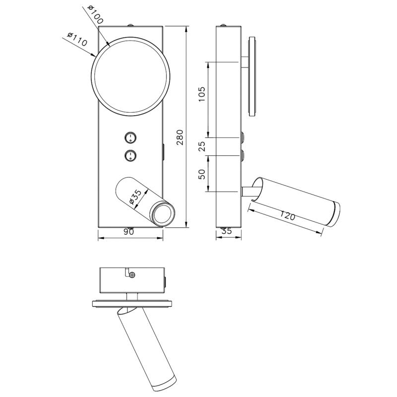 Aplique de la COLECCIÓN ARBUS en acabado Negro/madera. Fabricado en metal. Potencia: 11W Temperatura de color: 3000K Luz LED circular Ø11 cm Lector: orientable, tamaño 12 x 3,5 cmBase: 28 x 9 cm Conexión USBDoble interruptor ON/OFF