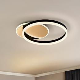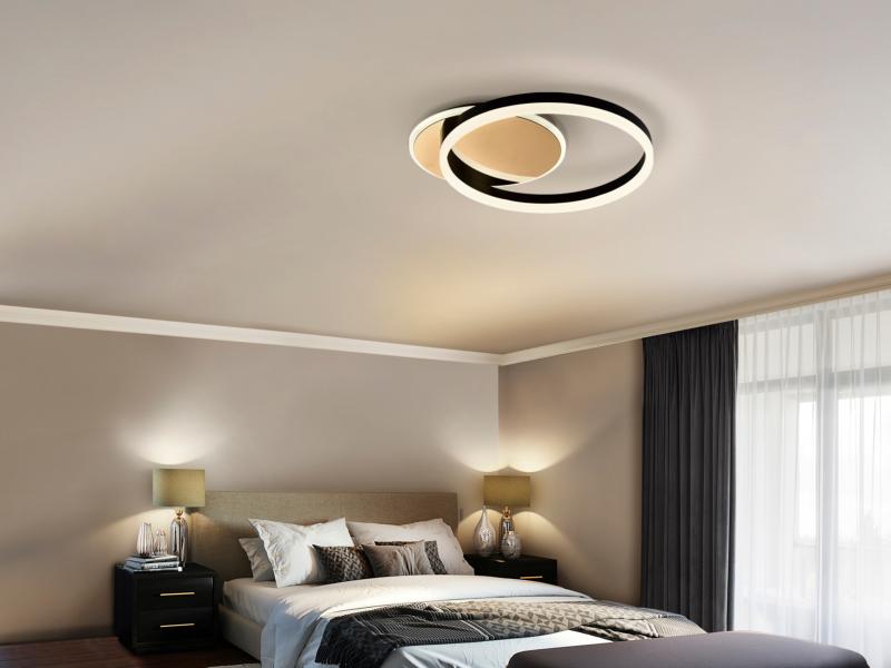 Plafón de techo o lámpara de pared, realizado en acero acabado oro y aluminio acabado negro mate. Difusor de acrílico opal. 38W LED. 1.400 lm. 3.000 K.