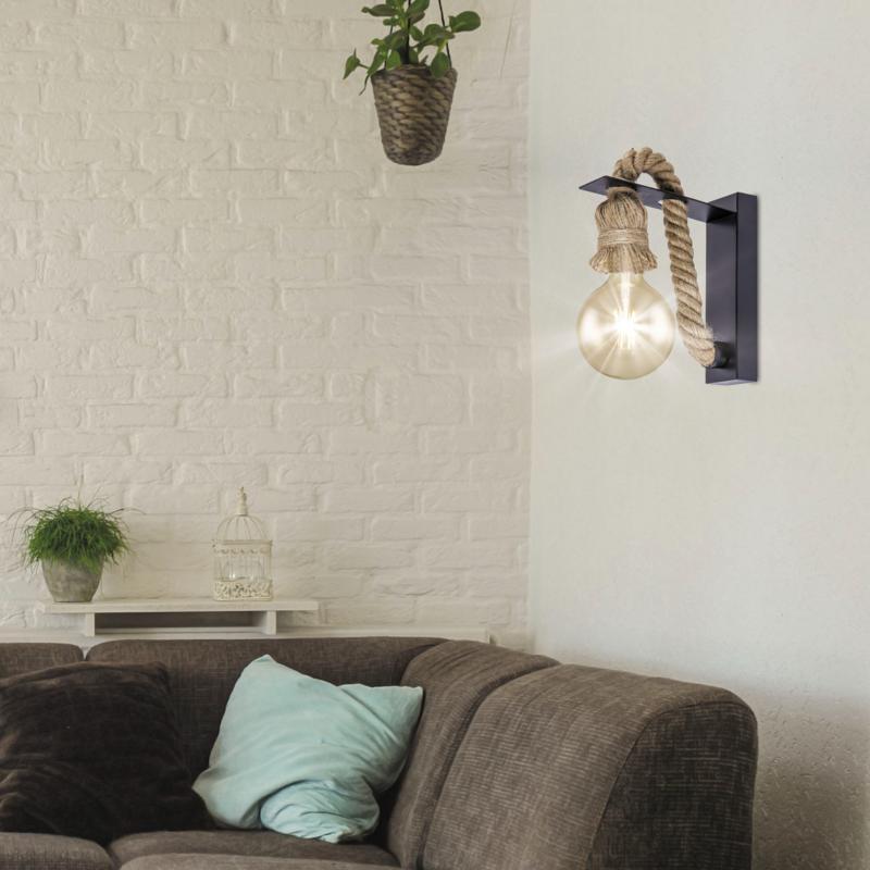 Aplique ROPE negro 1 x 60w e-27 - ALEMARLámpara / Aplique de pared de la colección ROPE, fabricada en cuerda/soga de cáñamo, un material resistente y duradero con base metálica de color negro. Una pieza de estilo industrial chic, que nos tiene enamorados desde su presentación. Materiales y Tonalidad Materiales: Cuerda/Metal Tonalidad: Natural Iluminación Iluminación Tipo: Bombilla LED Número de bombillas: 1 Portalámparas: E-27 Potencia de casquillos: 60W Bombillas incluidas: No Medidas Medidas (cm): 5x17x18 Peso (kg): 0.26 Otros datos de interés EAN: 8435045090921.0 Colección: ROPE