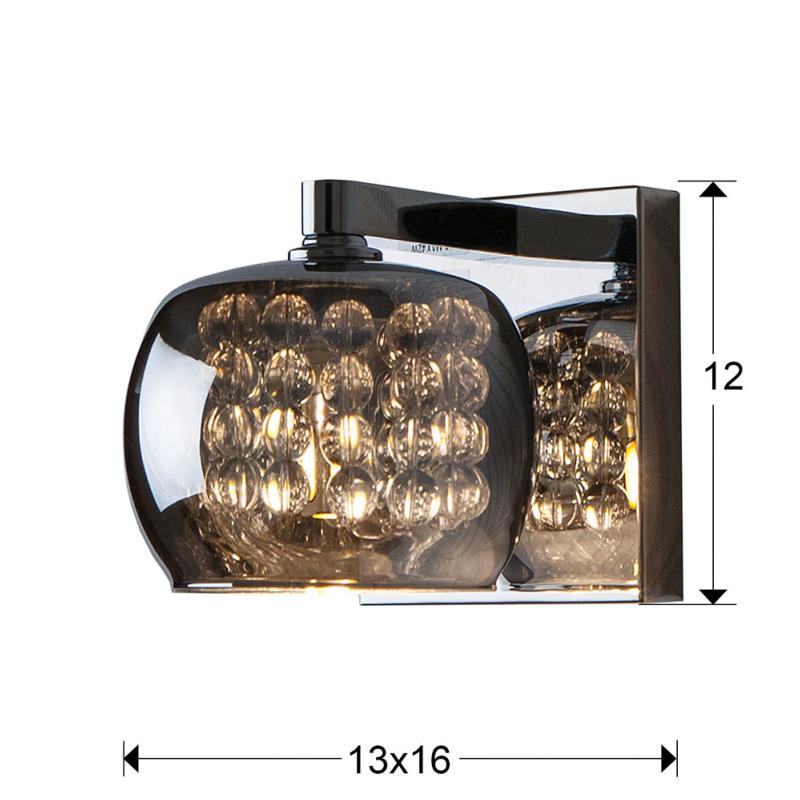 APLIQUE ·ARIAN· 1L - SCHULLERLampara de pared de 1 luz, realizada en acero acabado brillo. Tulipa de cristal espejado con tiras de cuentas de cristal en el interior. Material/Tonalidad - Materiales: Acero y cristal/Steel and glas - Acabado: Brillo. Espejado y transpte./B Iluminación - Número de Bombillas: 1 - Tipo de Bombillas: G9 - Bombillas incluidas: Sí - Potencia por Bombilla: 6W - Voltaje de Bombilla/s incluidas: 220 V - Potencia Eléctrica: 10W - Lúmenes: 550 - Lúmenes por Bombilla: 550.0 - Tensión: 220/240 V - Frecuencia: 50 Hz - Frecuencia de Bombilla: 50 Hz Medidas - Articulo: Ancho 13 cms / Fondo 16 cms / Alto 12 cms - Peso: 0,6 Kg - Pantalla/Tulipa: Diámetro 13 cms / Alto 10 cms - Florón de techo: Ancho 12 cms / Alto 12 cms / Fondo 2 cms Otros Datos de Interés - IP: IP 20 - Código EAN: 8435435313012.0 - Colección: Arián