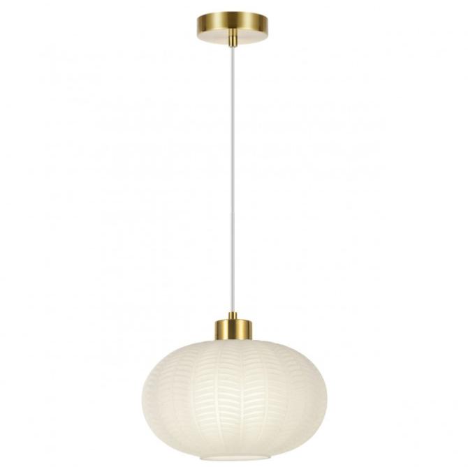 Colgante de la colección NAWA, en acabado Latón y tulipa Opal, fabricado en metal y cristal. Usa bombilla E-27, compatible con bombillas led (no incluidas)Medida tulipa: Ø25x16cm