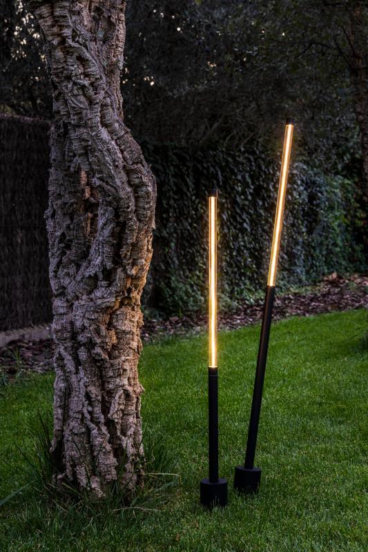BAMBOU 1068 Estaca negro FARO BARCELONA BAMBOU 1068 es una estaca decorativa para iluminación exterior. Su diseño permite crear líneas de luz en el espacio proporcionando múltiples opciones para el diseño de paisajismo y jardines. Además, podrás combinarla con la versión de H:126cm para generar diversas composiciones. Material y Acabado Cuerpo: Aluminio / Tonalidad: Negro MateDifusor: Cristal / Tonalidad: Transparente Iluminación Tipo: LED MODULEPotencia Máxima: 8 WLúmenes: 410Tonalidad de la luz: 2700KGrados de apertura de luz: 360Voltaje: 220V-240VFactor de Potencia: 0.9 / CRI: ?80 Medidas y Peso Medidas (mm) Altura Total: 1068Diámetro Total (mm): 70Peso: 1.09 Kg Otros datos de Interés Otras Funcionalidades: Incluye conector IP68IP: 65Protección anti corrosión: NoEAN: 8421776323735