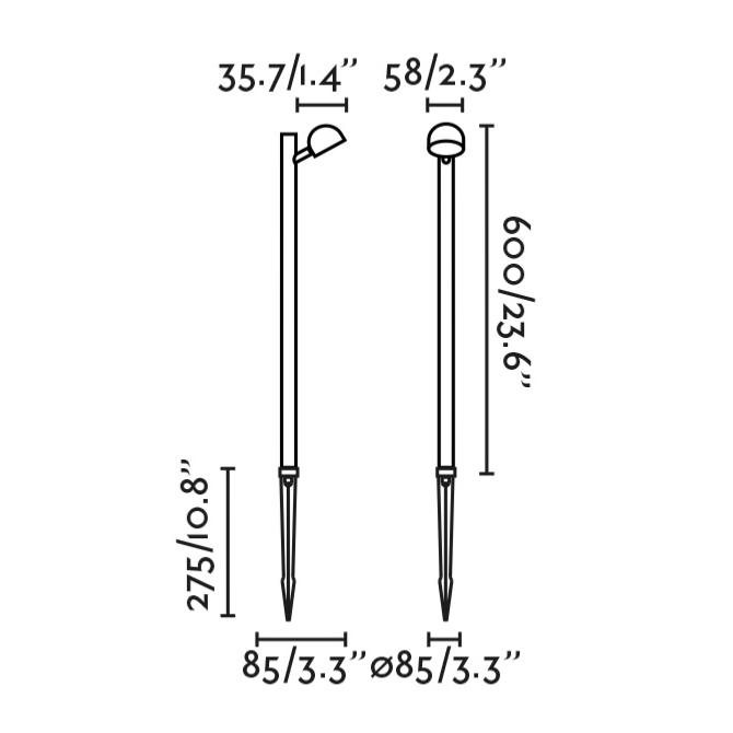 BROT 600 Estaca negra FARO BARCELONA BROT es una divertida colección de diseño para la iluminación exterior creada por Yembara Studio. De luz cálida, el diseño de esta estaca es minimalista y arquitectónico perfecto para iluminación de jardines, parques, etc. BROT 600 es una perfecta alternativa para iluminar vegetación por su posibilidad de orientación. Material y Acabado Cuerpo: Aluminio / Tonalidad: Negro Iluminación Tipo: SMD LEDPotencia Máxima: 7 WLúmenes: 290Tonalidad de la luz: 2700KGrados de apertura de luz: 80Voltaje: 100V-240VFactor de Potencia: 0.8 / CRI: >80 Medidas y Peso Medidas (mm) Altura Total: 810 / Longitud: 120 / Fondo: 85Peso: 1.2 Kg Otros datos de Interés Otras Funcionalidades: Incluye conector IP68IP: 65Protección anti corrosión: NoDiseñador: YEMBARASTUDIOEAN: 8421776345805