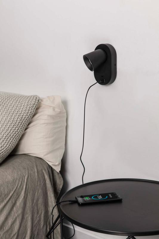 CORB es un aplique negro fabricado en acero y que se puede orientar. Cuenta con entrada USB C. Material y Acabado Cuerpo: Aluminio / Tonalidad: Negro Mate Iluminación Número de portalámparas: 1Luminaria regulable en intensidad (W): NoLector: SíVoltaje: 100V-240V Medidas y Peso Medidas (mm) Altura Total: 170 / Longitud: 100 / Fondo: 115Peso: 0.45 Kg Otros datos de Interés IP: 20Protección anti corrosión: NoSalida carga de dispositivos externos: SALIDA USB TIPO CEAN: 8421776414204