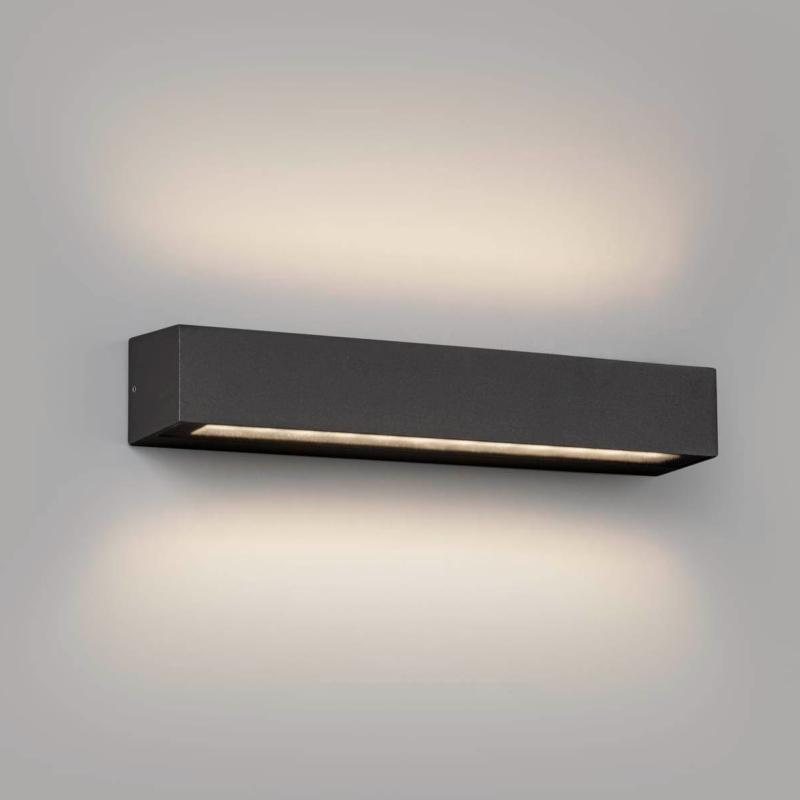 DORO 380 Aplique gris oscuro FARO BARCELONA DORO es una luminaria de pared para iluminación exterior fabricado en aluminio y difusor de cristal. Este aplique de pared LED blanco cuenta con IP65 que le otorga una alta protección contra la lluvia y los cuerpos sólidos. La luz se proyecta por ambos lados. Versión de 20W. Material y Acabado Cuerpo: Aluminio / Tonalidad: Gris OscuroDifusor: Cristal / Tonalidad: Prismático Iluminación Tipo: SMD LEDPotencia Máxima: 2x10 WLúmenes: 2x599Tonalidad de la luz: 3000KOrientación de la luz: IndirectaVoltaje: 220V-240VCRI: >80 Medidas y Peso Medidas (mm) Altura Total: 58 / Longitud: 380 / Fondo: 75Peso: 1.73 Kg Otros datos de Interés IP: 65Protección anti corrosión: NoEAN: 8421776231344