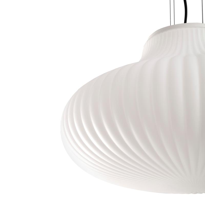 La colección ISABELLE diseñada por Héctor Serrano destaca por su textura ondulada y delicada que evoca a elegantes jarrones. Emitiendo una luz suave y cálida a través de un difusor de vidrio opal, sus ondas juegan con luces y sombras otorgándole una personalidad única. La lampara colgante ISABELLE 500 se adapta idealmente a cualquier espacio, ya sea doméstico o de contract. Disponibles en tres modelos complementarios, pueden lucir de forma individual o en conjunto según el ambiente deseado.