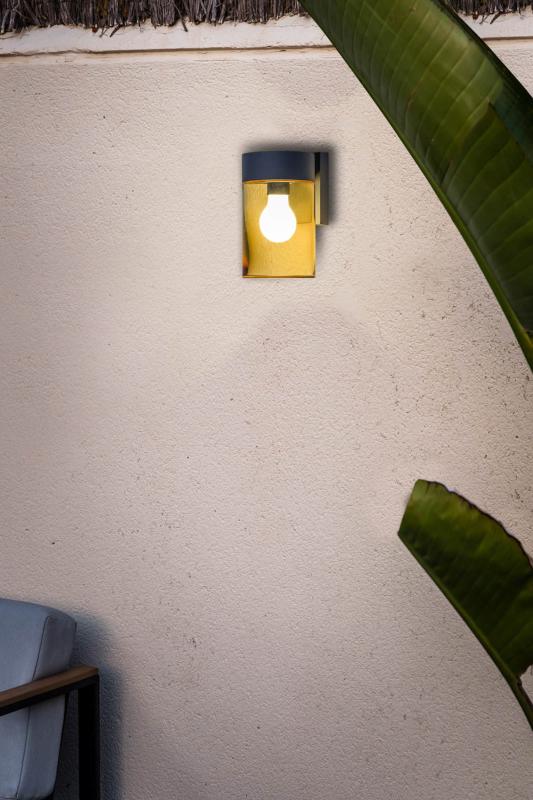 KILA Aplique gris oscuro ámbar FARO BARCELONA KILA es una colección de luminarias de exterior fabricada en aluminio y cristal. Su diseño separa idealmente la estructura gris del difusor semitransparente, que deja a la vista la bombilla. Este aplique de pared gris oscuro ámbar, es ideal para entradas, porches y terrazas. Material y Acabado Cuerpo: Aluminio / Tonalidad: Gris OscuroDifusor: Cristal / Tonalidad: Ámbar Iluminación Tipo: E27 LEDNúmero de portalámparas: 1 / Formato de Bombilla: A60 / Bombilla Incluida: NoPotencia Máxima: 15 WLuminaria regulable en intensidad (W): NoVoltaje: 100V-240V Medidas y Peso Medidas (mm) Altura Total: 200 / Longitud: 120 / Fondo: 160Peso: 1.67 Kg Otros datos de Interés IP: 65Protección anti corrosión: NoEAN: 8421776245402