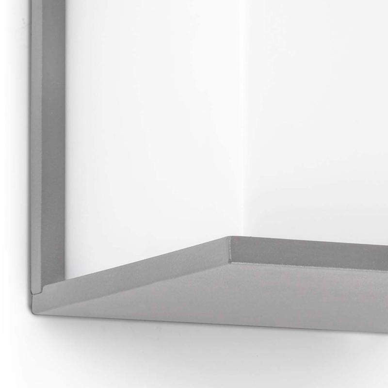 Lámpara de pared de exterior de estilo contemporáneo fabricado en aluminio inyectado y difusor de PVC opal.
