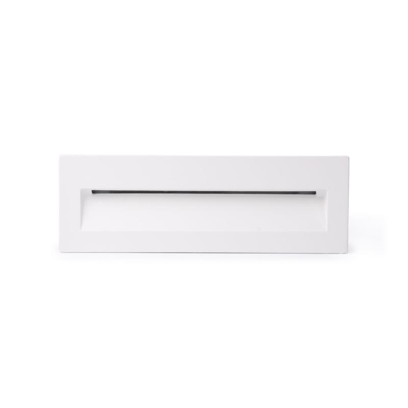 Luz empotrable LED para iluminar jardines y terrazas fabricado en aluminio inyectado. Este empotrable LED de pared blanco es ideal para la iluminación exterior de señalización. Esta luminaria cuenta con IP65 que le otorga una alta protección contra la lluvia y los cuerpos sólidos.