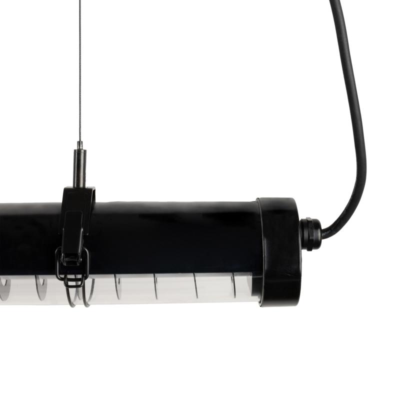 SCUBA LOUVER 1200 Colgante negra 36W FARO BARCELONA SCUBA LOUVER 1200 es una luminaria colgante negra fabricada en acero inoxidable. Está pensada para el exterior, pero también encaja en multitud de espacios interiores. Tiene IP65, que le otorga una alta protección contra la lluvia y los cuerpos sólidos y una resistencia a golpes de IK10. De estilo industrial, el haz de luz se proyecta por una parte del tubo. SCUBA LOUVER tiene una potencia de 36W y una temperatura de color de 2700K. Cuenta con un louver antideslumbrante que favorece el confort visual de la luminaria. Material y Acabado Cuerpo: Aluminio / Tonalidad: NegroDifusor: PC / Tonalidad: Transparente Iluminación Tipo: SMD LEDPotencia Máxima: 36 WLúmenes: 1575Tonalidad de la luz: 2700KGrados de apertura de luz: 80x130Voltaje: 220V-240VFactor de Potencia: 0.9 / CRI: >90 Medidas y Peso Medidas (mm) Longitud: 1200Diámetro Total (mm): 70Peso: 1.67 Kg Otros datos de Interés IP: 65Protección anti corrosión: NoEAN: 8421776345966