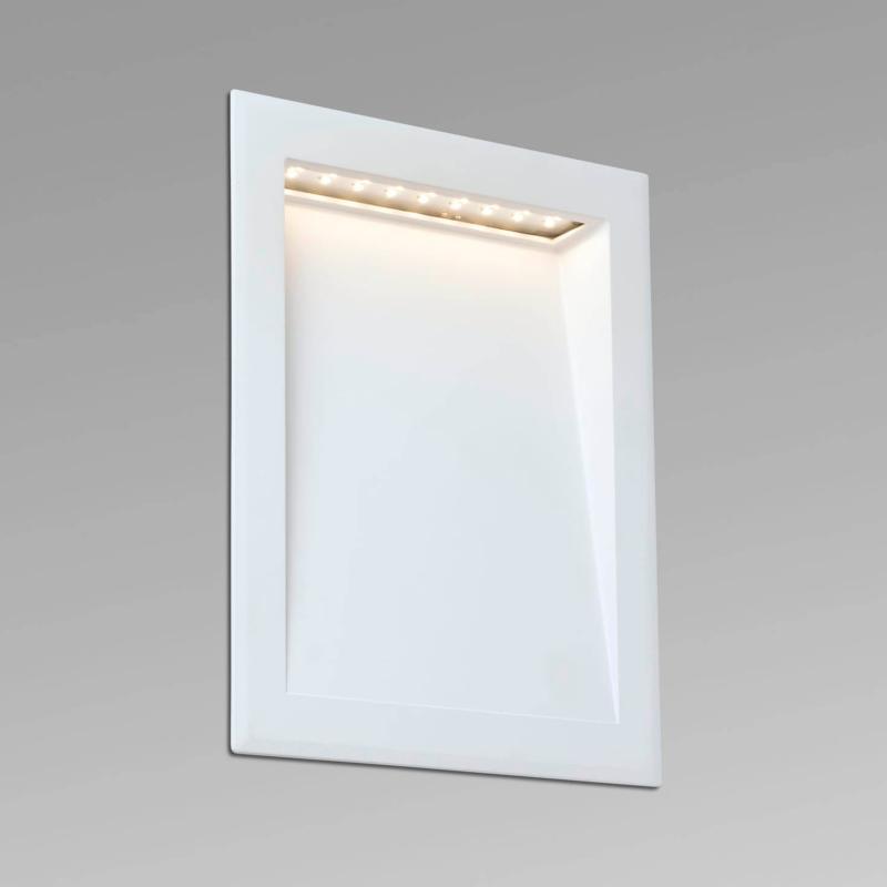 SOUN 193 Empotrable blanco FARO BARCELONA Luz empotrable LED para iluminar jardines y terrazas fabricado en aluminio y policarbonato. La fuente de iluminación es LED 8W 3000K, driver incluido. Esta lámpara de pared blanca es ideal para la iluminación exterior de señalización. Material y Acabado Cuerpo: Aluminio / Tonalidad: Blanco MateDifusor: Cristal / Tonalidad: Transparente Iluminación Tipo: SMD LEDPotencia Máxima: 8 WLúmenes: 705Tonalidad de la luz: 3000KGrados de apertura de luz: 120Voltaje: 100V-240VCRI: >80 Medidas y Peso Medidas (mm) Altura Total: 238 / Longitud: 193 / Fondo: 73Incluye caja de empotrar: Sí / Medida caja empotrar (mm LargxProfxAlto): 183x225x70Medidas de corte (mm): 183x225x70Peso: 1.31 Kg Otros datos de Interés IP: 65Protección anti corrosión: NoEAN: 8421776181045