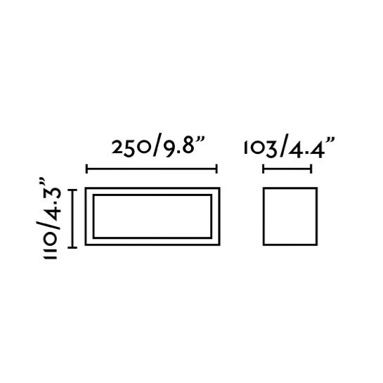 Medidas (mm) Altura Total: 110 / Longitud: 250 / Fondo: 103Peso: 0.94 Kg