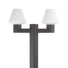 Farola Mistu Faro MISTU es una farola de estilo moderno para iluminación exterior, su estilo rompe con todo lo anterior dandole un look diferente y moderno, fabricada en aluminio y policarbonato opal. Esta es la versión con dos luces.