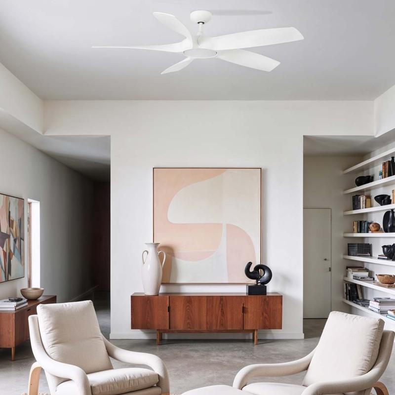 Materiales | - Base Motor: Acero - Aspas: ABS - Difusor inferior: Policarbonato | | Tonalidad de Metal | Blanco | Accionado mediante | Mando a distancia. | Programador de apagado | No | Numero de Aspas | 5 | Tonalidad de Aspas | Blancas | Motor Tipo | DC - Bajo Consumo | Velocidades | 6 | Velocidades / Consumo | - 1ª velocidad: 66 rpm - 7w - 2ª velocidad: 88 rpm - 10w - 3ª velocidad: 104 rpm - 13w - 4ª velocidad: 115 rpm - 17w - 5ª velocidad: 138 rpm - 24w - 6ª velocidad: 146 rpm - 29w | | Flujo de Aire | 234 m3 | Función Invierno | Si. Activada en el mando. | Luz | Si - Luz LED SMD de 20w. | Datos de Luz | 1281 lúmenes - 3000k - Luz Semicálida | Luminaria incluida | Si | Posible montaje sin Barra | No | Posible montaje en techo inclinado | Si | Grafico de medidas Ventilador Cocos Faro |
