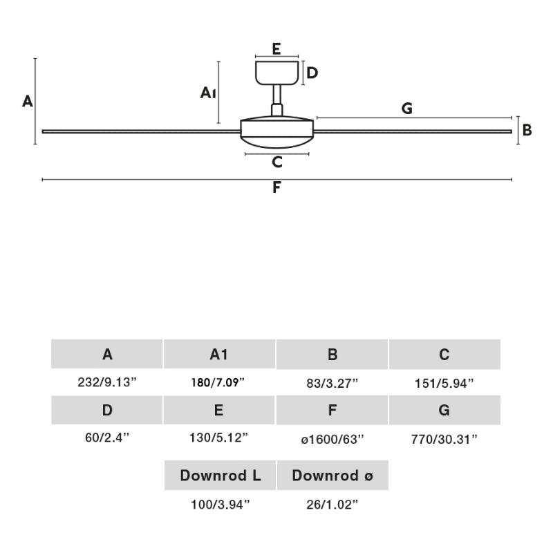 Materiales | - Base Motor: Acero - Aspas: Aluminio | | Tonalidad de Metal | Negro Mate | Accionado mediante | Mando a distancia. | Programador de apagado | - | Numero de Aspas | 3 | Tonalidad de Aspas | Negro Mate | Motor Tipo | DC - Bajo Consumo | Velocidades | 6 | Velocidades / Consumo | - 1ª velocidad: 63 rpm - 4w - 2ª velocidad: 83 rpm 6w - 3ª velocidad: 100 rpm - 10w - 4ª velocidad: 120 rpm - 16w - 5ª velocidad: 133 rpm - 23w - 6ª velocidad: 149 rpm - 34w | | Flujo de Aire | 216 m3 | Función Invierno | Si. Activada en el mando. | Luz | No | Posible montaje sin barra | No | Posible montaje en techo inclinado | Sí* | Grafico de medidas Ventilador Cruiser XL Faro |