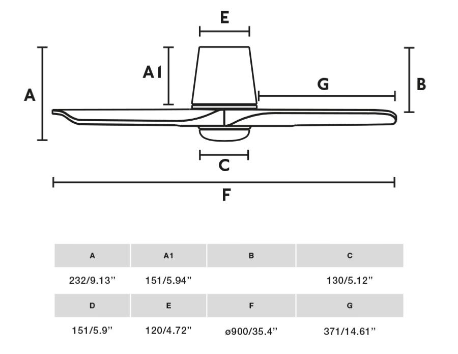 Materiales | - Base Motor: Acero - Aspas: ABS - Difusor: Cristal | | Tonalidad de Metal | Negro mate | Accionado mediante | Mando a distancia. | Programador de apagado | Sí | Numero de Aspas | 3 | Tonalidad de Aspas | Negro mate | Motor Tipo | DC - Bajo Consumo | Velocidades | 6 | Velocidades / Consumo | - 1ª velocidad: 110 rpm - 4w - 2ª velocidad: 162 rpm - 7w - 3ª velocidad: 197 rpm - 10w - 4ª velocidad: 238 rpm - 16w - 5ª velocidad: 267 rpm - 22w - 6ª velocidad: 300 rpm - 30w | | Flujo de Aire173 | 147 m3 | Función Invierno | Si. Activada en el mando. | Luz | Sí - 10w Led SMD | | Lumenes | 480 Lumenes | | Tonalidad de la luz | Seleccionable: 2700k, 4000k, 6000k | | Luminaria Incluida | Sí | Posible montaje sin barra | No | Posible montaje en techo inclinado | No | Grafico de medidas Ventilador Hey Tub S Faro |