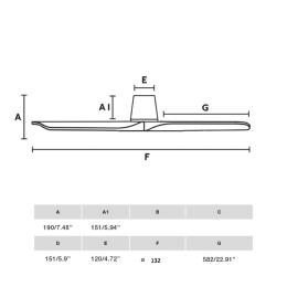 Materiales | - Base Motor: Acero - Aspas: Madera natural | | Tonalidad de Metal | Blanco Mate | Accionado mediante | Mando a distancia. | Programador de apagado | Sí | Numero de Aspas | 3 | Tonalidad de Aspas | Madera clara | Motor Tipo | DC - Bajo Consumo | Velocidades | 6 | Velocidades / Consumo | - 1ª velocidad: 58 rpm - 4w - 2ª velocidad: 75 rpm - 5w - 3ª velocidad: 94 rpm - 8w - 4ª velocidad: 124 rpm - 13w - 5ª velocidad: 152 rpm - 23w - 6ª velocidad: 173 rpm - 32w | | Flujo de Aire | 175 m3 | Función Invierno | Si. Activada en el mando. | Luz | No | Posible montaje sin barra | No | Posible montaje en techo inclinado | No | Grafico de medidas Ventilador Heywood Tub L Faro |