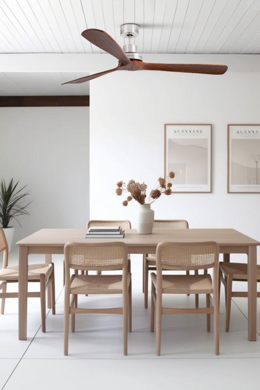 Materiales | - Base Motor: Acero - Aspas: Madera Natural | | Tonalidad de Metal | Niquel Mate | Accionado mediante | Mando a distancia. | Programador de apagado | Si | Numero de Aspas | 3 | Tonalidad de Aspas | Nogal | Motor Tipo | DC - Bajo consumo | Velocidades | 6 | Velocidades / Consumo | - 1ª velocidad: 75 rpm - 6w - 2ª velocidad: 89 rpm - 9w - 3ª velocidad: 98 rpm - 11w - 1ª velocidad: 115 rpm - 17w - 2ª velocidad: 129 rpm - 24w - 3ª velocidad: 146 rpm - 35w | | Flujo de Aire | 261m3 | Función Invierno | Si. | Luz | No. | Ventilador con luz | Ver ventilador Lantau con Luz | Posible montaje sin Barra | No | Posible montaje en techo inclinado | Si* | Grafico de medidas Ventilador Lantau XL Faro | Guardar