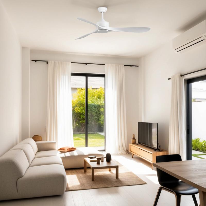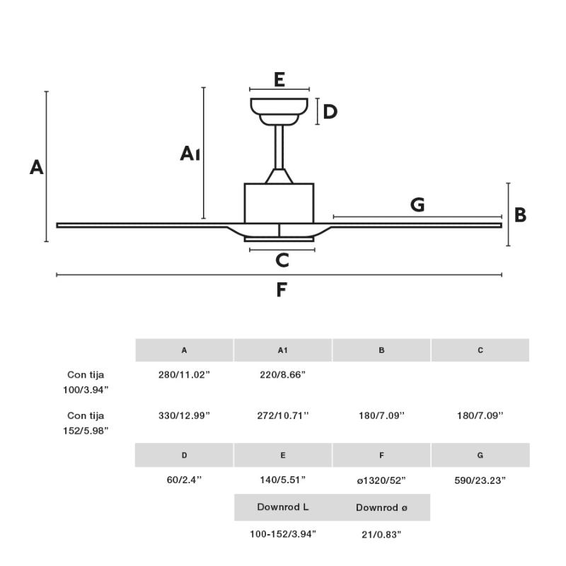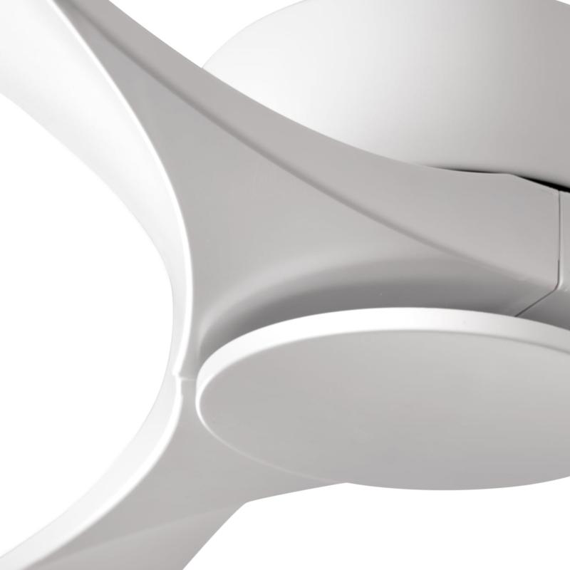 Materiales | - Base Motor: Acero - Aspas: ABS | | Tonalidad de Metal | Blanco | Accionado mediante | Mando a distancia. | Programador de apagado | Sí | Numero de Aspas | 3 | Tonalidad de Aspas | Blancas | Motor Tipo | DC - Bajo Consumo | Velocidades | 6 | Velocidades / Consumo | - 1ª velocidad: 90 rpm - 7w - 2ª velocidad: 105 rpm - 9w - 3ª velocidad: 115 rpm - 11w - 4ª velocidad: 125 rpm - 13w - 5ª velocidad: 135 rpm - 17w - 6ª velocidad: 152 rpm - 23w | | Flujo de Aire | 215 m3 | Función Invierno | Si. Activada en el mando. | Luz | No | Posible montaje sin barra | No | Posible montaje en techo inclinado | Si* | Grafico de medidas Ventilador Luzon Faro |