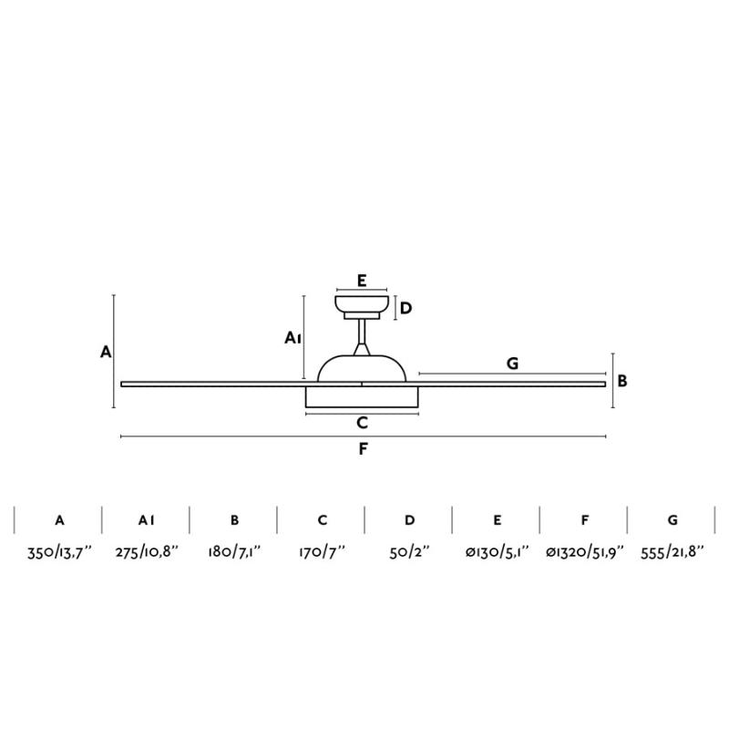 Materiales | - Base Motor: Acero - Aspas: ABS - Difusor inferior: Policarbonato | | Tonalidad de Metal | Blanco | Accionado mediante | Mando a distancia. | Programador de apagado | Sí | Numero de Aspas | 4 | Tonalidad de Aspas | Blancas | Motor Tipo | DC - Bajo Consumo | Velocidades | 6 | Velocidades / Consumo | - 1ª velocidad: 53 rpm - 4w - 2ª velocidad: 80 rpm - 6w - 3ª velocidad: 100 rpm - 9w - 4ª velocidad: 120 rpm - 15w - 5ª velocidad: 130 rpm - 19w - 6ª velocidad: 150 rpm - 30w | | Flujo de Aire | 137 m3 | Función Invierno | Si. Activada en el mando. | Luz | Si - Luz LED SMD de 18w. | Datos de Luz | 1034 lúmenes - 3000k - Luz Semicálida | Luminaria incluida | Si | Posible montaje sin Barra | - | Posible montaje en techo inclinado | No | Grafico de medidas Ventilador Polaris Faro |