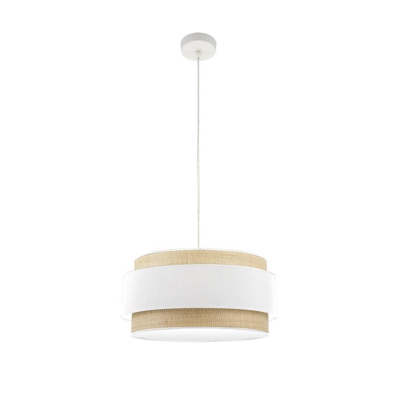 | | Colgante Kandy Fabrilamp | | Colgante serie Kandy Posee portalámparas E27 de Bombillas no incluidas. Pantalla formada por dos cuerpos en textil y florón metálico De estilo moderno / vintage y diseño elegante, ideal para decorar e iluminar en dormitorios, salones y salas de estar, aportando calidez a la estancia que ilumina. Sus dimensiones son regulable en altura, de 50<120x60x60 centímetros. En esta serie podemos encontrar los colgantes de 60, 50, 40 y 30 centímetros de diámetros, dos tamaños diferentes de sobremesas, los apliques, regleta de tres colgantes y el plafón de tres colgantes, todos combinando arpillera natural con textil en color blanco, negro, gris o marrón. | Caracteristicas Colgante Colet Fabrilamp | Materiales | - Carcasa de techo: Metal - Pantallas: Rafia y textil lino - Difusor inferior: Policarbonato (solo en version de 50 y 60cm) | | Tonalidad de Metal | - Version pantalla central Blanca: Blanco - Version pantalla central Gris: Niquel Satinado - Version pantalla central Marrón: Marrón - Version pantalla central Negra: Negro | | Tonalidades de pantalla disponibles | * Pantalla de Extremos: Rafia calada. * Pantalla de extremos: - Blanca - Gris - Marrón - Negro | | Iluminacion | Sí | Numero de Bombillas | - En colgante de 30cm: 1 bombilla tipo E-27 sin tapa inferior - En colgante de 40cm: 1 bombilla tipo E-27 sin tapa inferior - En colgante de 50cm: 2 bombillas tipo E-27 con tapa inferior - En colgante de 60cm: 3 bombillas tipo E-27 con tapa inferior | | Bombillas incluidas | No | | Dimensiones Disponibles | - Diámetro de pantalla 30cm - Diámetro de pantalla 40cm - Diámetro de pantalla 50cm - Diámetro de pantalla 60cm Altura Máxima 110cm. |