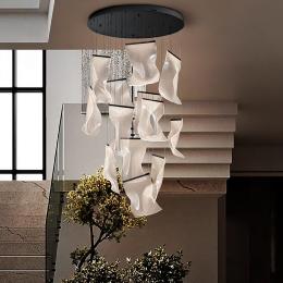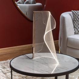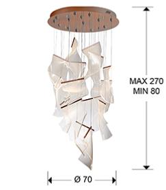Lámpara realizada en metal color oro rosa y tulipas de metacrilato microimpreso moldeado.
