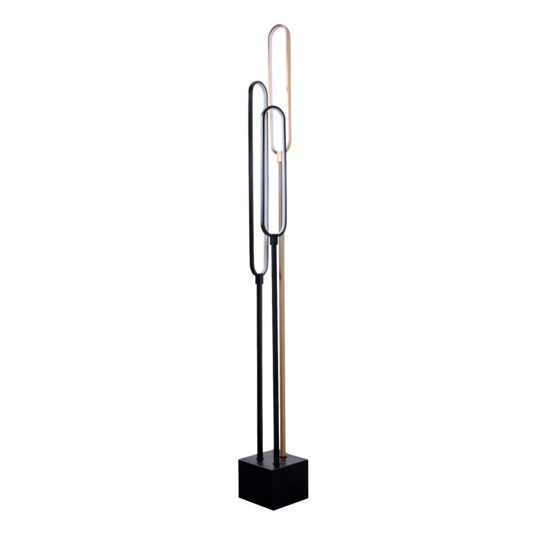 COLETTE - PIE SALON 3L NEGRO-ORO ROSA - SCHULLERLámpara de pie de 3 luces LED, realizada en aluminio cepillado y base de metal. Acabado oro rosa y negro mate. Difusores de silicona opal. 44W LED, 3.042 lm, 3.000 K. Material/Tonalidad - Materiales: Aluminio, metal, silicona./Alu- Acabado: Oro rosa, negro, opal./Rose go