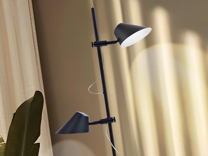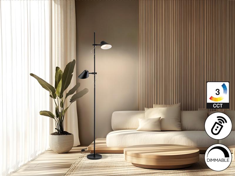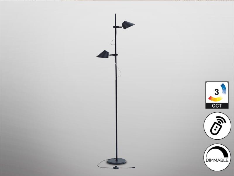ESINO- PIE SALON 2L NEGRO - SCHULLERLámpara de pie en metal y aluminio, color negro mate, difusor opal. Pulsador táctil y CONTROL REMOTO. 2 luces regulables en altura y orientables, funciones simultaneas e independientes: luz dimable, temperatura de color regulable. 20W LED, 1800 lm, C Material/Tonalidad - Materiales: Metal, aluminio, ABS/Metal, al - Acabado: Negro mate, opal./Matt black, Iluminación - Potencia Eléctrica: 20W - Lúmenes: 1800 - Tonalidad de la luz: 3000-6500 K - Regulable mediante: CONTROL RE - Tensión: 220/240 V - Frecuencia: 50/60 Hz - Vida Media: 50000 Horas - CRI: 84 Medidas - Articulo: Ancho 48 cms / Fondo 23 cms / Alto 184 cms - Peso: 3,8 Kg - Pantalla/Tulipa: Ancho 16 cms / Alto 10 cms / Fondo 12 cms Otros Datos de Interés - IP: IP 20 - Código EAN: 8435435343217.0 - Colección: Esino