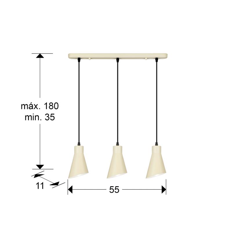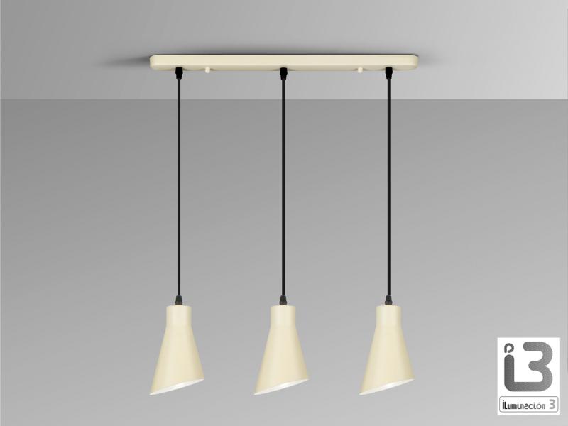 Lámpara de 3 luces realizada en metal acabado crema satinado. Regulable en altura. 3 E27