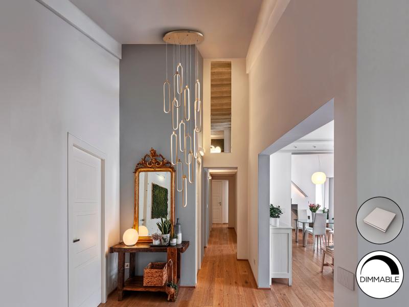 COLETTE-LAMPARA 14L ORO ROSA DIM - SCHULLERLámpara de 14 luces LED, realizada en aluminio cepillado, acabado oro rosa. Difusores de silicona opal. Regulable en altura. 182W LED, 16,380 lm, 3.000 K. DIMABLE, con control remoto y con APP. Material/Tonalidad - Materiales: Aluminio, silicona./Aluminium,- Acabado: Oro rosa, opal/Rose gold, opal