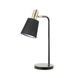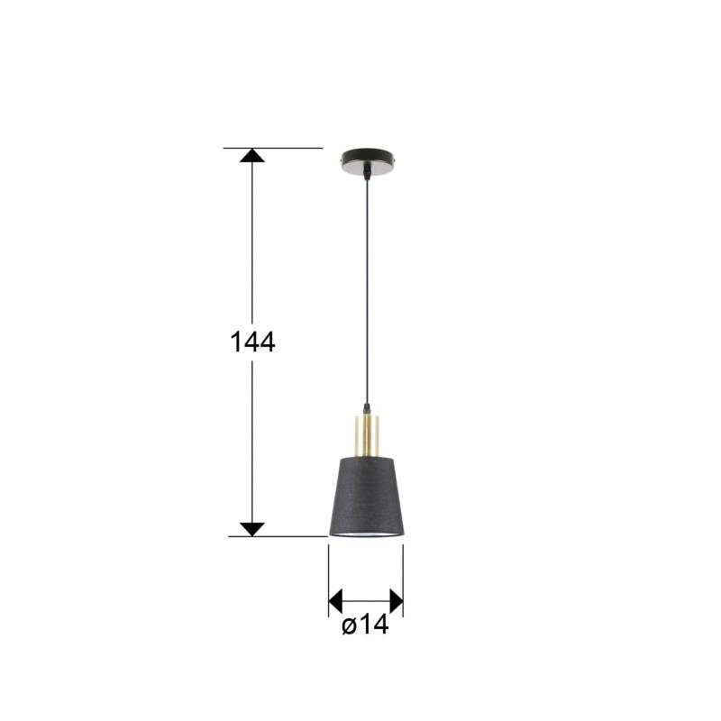 Lámpara de 1 luz realizada en metal acabado negro mate y detalles en latón satinado. Pantala textil negra. Altura regulable. 1 E27