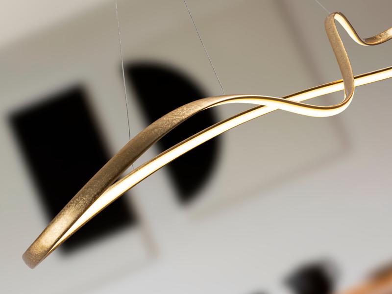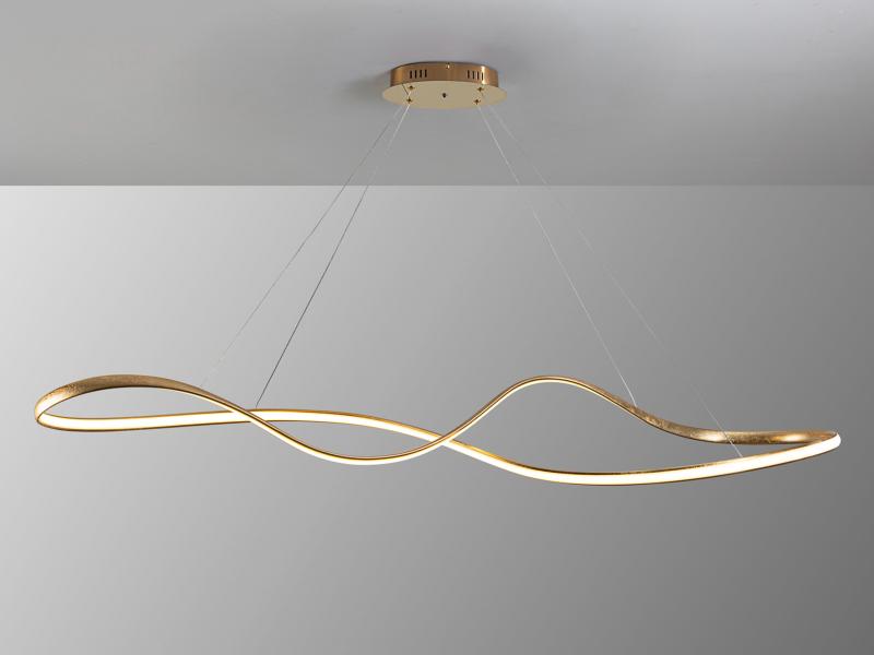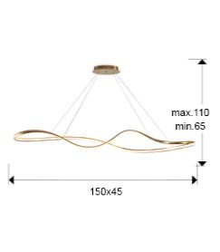 LIA- LAMPARA GRANDE PAN ORO - SCHULLERLámpara con luz LED, DIMADO y cambio de color CCT. Realizada en acero y aluminio, acabado PAN DE ORO y detalles en baño dorado brillo. Difusor silicona opal. Regulable en altura. Iluminación LED 37W, 2800 lm, 2700-5000 K. Incluye mando a distancia. Material/Tonalidad - Materiales: Metal, silicona./Metal, silico - Acabado: PAN DE ORO, opal./GOLD LEAF, o Iluminación - Potencia Eléctrica: 37W - Lúmenes: 2800 - Tonalidad de la luz: 2700-5000 K - Regulable mediante: CONTROL RE - Tensión: 180/240 V - Frecuencia: 50/60 Hz - Vida Media: 50000 Horas - CRI: 80 Medidas - Articulo: Ancho 150 cms / Fondo 45 cms / Alto 18 cms - Lámpara instalada: Altura Mínima 65 cms / Altura Máxima 110 cms - Peso: 1,84 Kg - Florón de techo: Ancho 22 cms / Alto 5 cms / Fondo 12 cms Otros Datos de Interés - IP: IP 20 - Código EAN: 8435435339272.0 - Colección: Lia