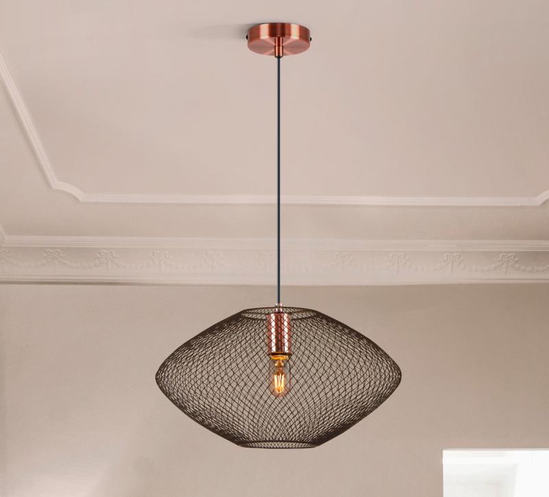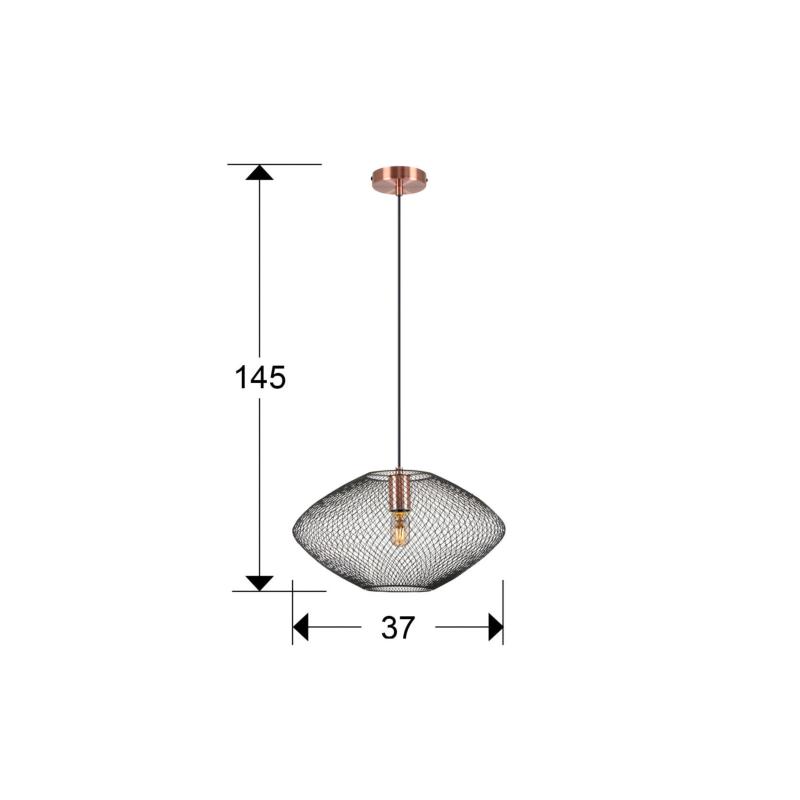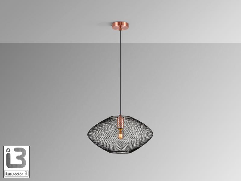 MELANY- LAMPARA 1L NEGRO-COBRE - ILUMINACION i3 By SCHULLERLámpara de 1 luz realizada en metal acabado cobre satinado y pantalla de malla metálica en negro mate. Altura regulable. 1 E27 Material/Tonalidad - Materiales: Metal./Metal - Acabado: Cobre satinado, negro mate./S Iluminación - Potencia Eléctrica: 20W - Tensión: 110/220 V - Frecuencia: 50/60 Hz Medidas - Articulo: Diámetro 37 cms / Alto 22 cms - Lámpara instalada: Altura Mínima 40 cms / Altura Máxima 150 cms - Peso: 0,69 Kg - Pantalla/Tulipa: Diámetro 37 cms / Alto 20 cms - Florón de techo: Diámetro 10 cms / Alto 2 cms Otros Datos de Interés - IP: IP 20 - Código EAN: 8435435342876.0 - Colección: Melany