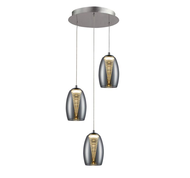 NUEVA NEBULA LAMPARA 3L CROMO - SCHULLERLámpara de 3 luces LED, realizada en metal acabado cromo. Doble tulipa, exterior realizada en cristal espejado e interior en policarbonato transparente con forma de cono escalonado. Regulable en altura. 3x5W LED. 1.350 lm 3.000 K. Material/Tonalidad - Materiales: Metal, cristal, policarbonato/ - Acabado: Cromo, espejado, transparente/ - Tonalidad de Cable: TRANSPARENTE Iluminación - Potencia Eléctrica: 15W - Lúmenes: 1350 - Tonalidad de la luz: 3000 K - Dimable: NO - Tensión: 180/240 V - Frecuencia: 50/60 Hz - Vida Media: 50000 Horas - CRI: 80 Medidas - Articulo: Diámetro 32 cms / Alto 85 cms - Lámpara instalada: Altura Mínima 35 cms / Altura Máxima 150 cms - Peso: 2,1 Kg - Pantalla/Tulipa: Diámetro 12 cms / Alto 17 cms - Florón de techo: Diámetro 23 cms / Alto 4 cms Otros Datos de Interés - IP: IP 20 - Código EAN: 8435435321680.0 - Colección: Nebula