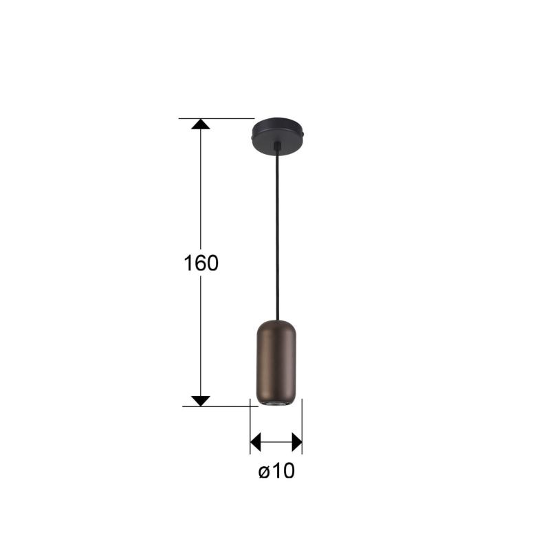 NIMES LAMPARA 1L NEGRO-MARRON - ILUMINACION i3 By SCHULLERLámpara realizada en metal acabado negro mate. Tulipa de metal marrón oscuro. Regulable en altura. Portalámparas GU10. Material/Tonalidad - Materiales: Metal./Metal - Acabado: Negro mate, marrón oscuro./Mat Iluminación - Potencia Eléctrica: 10W - Tensión: 110/220 V - Frecuencia: 50/60 Hz Medidas - Articulo: Diámetro 10 cms / Alto 16 cms - Lámpara instalada: Altura Mínima 30 cms / Altura Máxima 160 cms - Peso: 0,52 Kg - Pantalla/Tulipa: Diámetro 18 cms / Alto 16 cms - Florón de techo: Diámetro 10 cms / Alto 3 cms Otros Datos de Interés - IP: IP 20 - Código EAN: 8435435343170.0 - Colección: Nimes