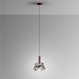 Lámpara de 1 luz, realizada en aluminio cepillado acabado en tono bronce oscuro. Tulipa de cristal espejado con baño electrolítico en tono ambar, con luz LED y difusor de acrílico opal. 6W LED, 190 lm, 3000K