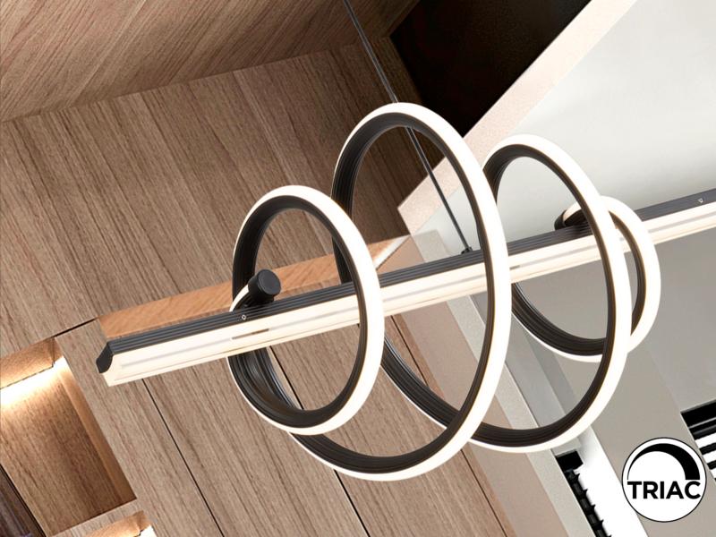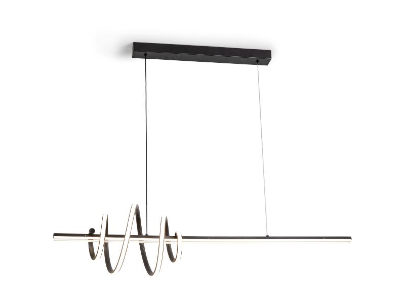 Lámpara realizada en metal y aluminio acabado negro mate. Difusor de acrílico y silicona opal. Altura regulable. 40W LED, 4.470lm, 3.000K.
