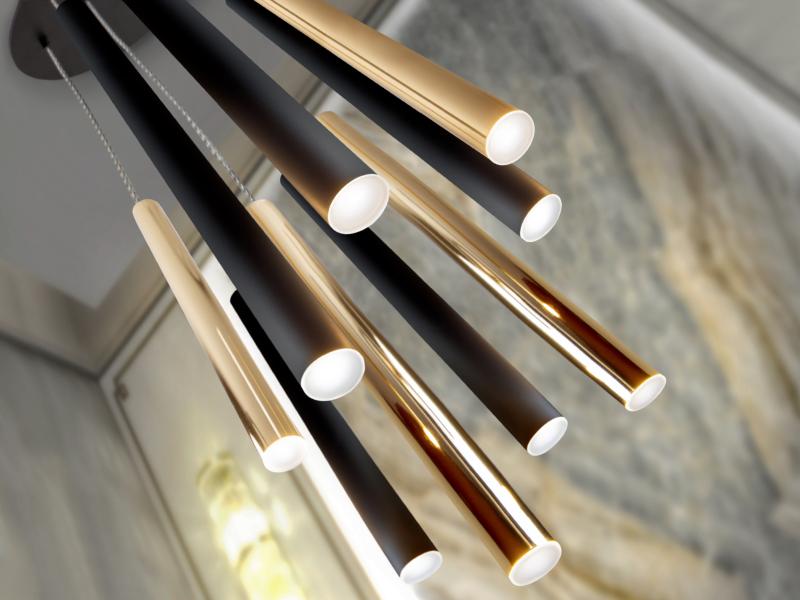LAMPARA VARAS ORO/NEGRO 9L - SCHULLER