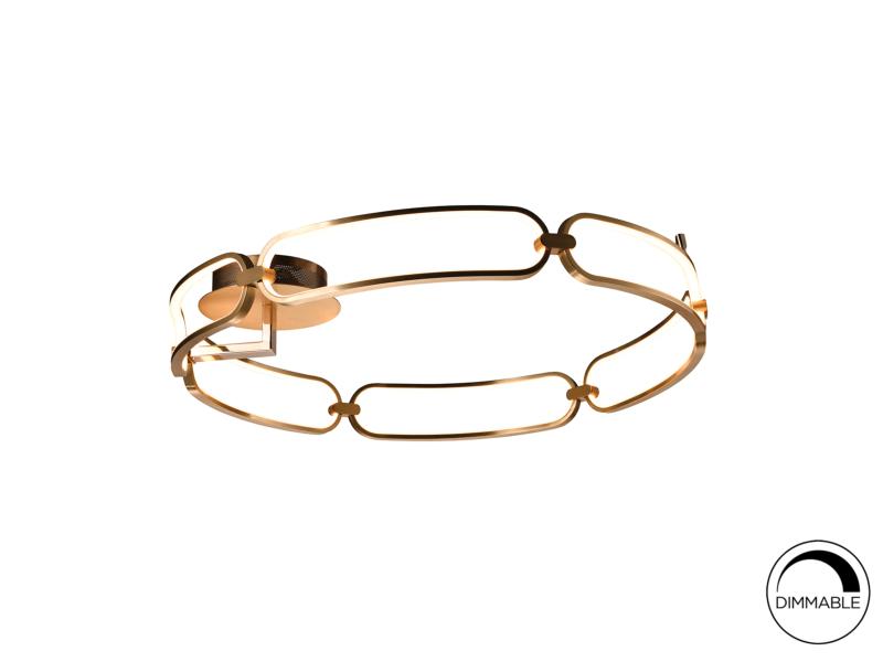 COLETTE-PLAFON LED Ø80 ORO ROSA - SCHULLERPlafón de techo LED grande, realizado en aluminio cepillado, acabado oro rosa. Difusores de silicona opal. 65W LED, 5.850 lm, 3.000 K Material/Tonalidad - Materiales: Aluminio, silicona./Aluminium, - Acabado: Oro rosa, opal/Rose gold, opal Iluminación - Potencia Eléctrica: 65W - Lúmenes: 5850 - Tonalidad de la luz: 3000 K - Tensión: 180/240 V - Frecuencia: 50/60 Hz - Vida Media: 50000 Horas - CRI: 80 Medidas - Articulo: Diámetro 80 cms / Alto 16 cms - Peso: 2,55 Kg - Florón de techo: Diámetro 21 cms / Alto 5 cms Otros Datos de Interés - IP: IP 20 - Código EAN: 8435435327811.0 - Colección: Colette