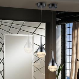 LAMPARA 4L·ELIE·CROMO - SCHULLERLámpara de 4 luces LED, realizada en metal acabado cromo. Tulipas con forma de gota realizadas en cristal macizo con burbujas decorativas en su interior. Regulables en altura. 4x5W LED. 1.600 lm. 3.000 K. Material/Tonalidad - Materiales: Metal, cristal./Metal, glass- Acabado: Cromado, transparente./Chromed