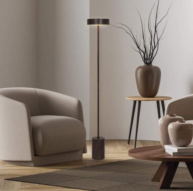 Pie de salon de la Colección FRESNO en acabado Madera oscura, fabricado en metal.3 niveles de intensidad de luz.LED 12W 1000LM 4000KCable 1,5m negroInterruptor On/Off en la base.