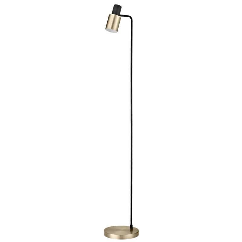 Lámpara de pie / Pie de salón de la Colección Maena. Fabricado en metal, acabado en negro y latón, dispone de cabezal orientable e interruptor ON/OFF en el cabezal. Usa bombillas E-14, 1 x E-14 40W Max., compatibles con bombillas LED (no incluidas).
